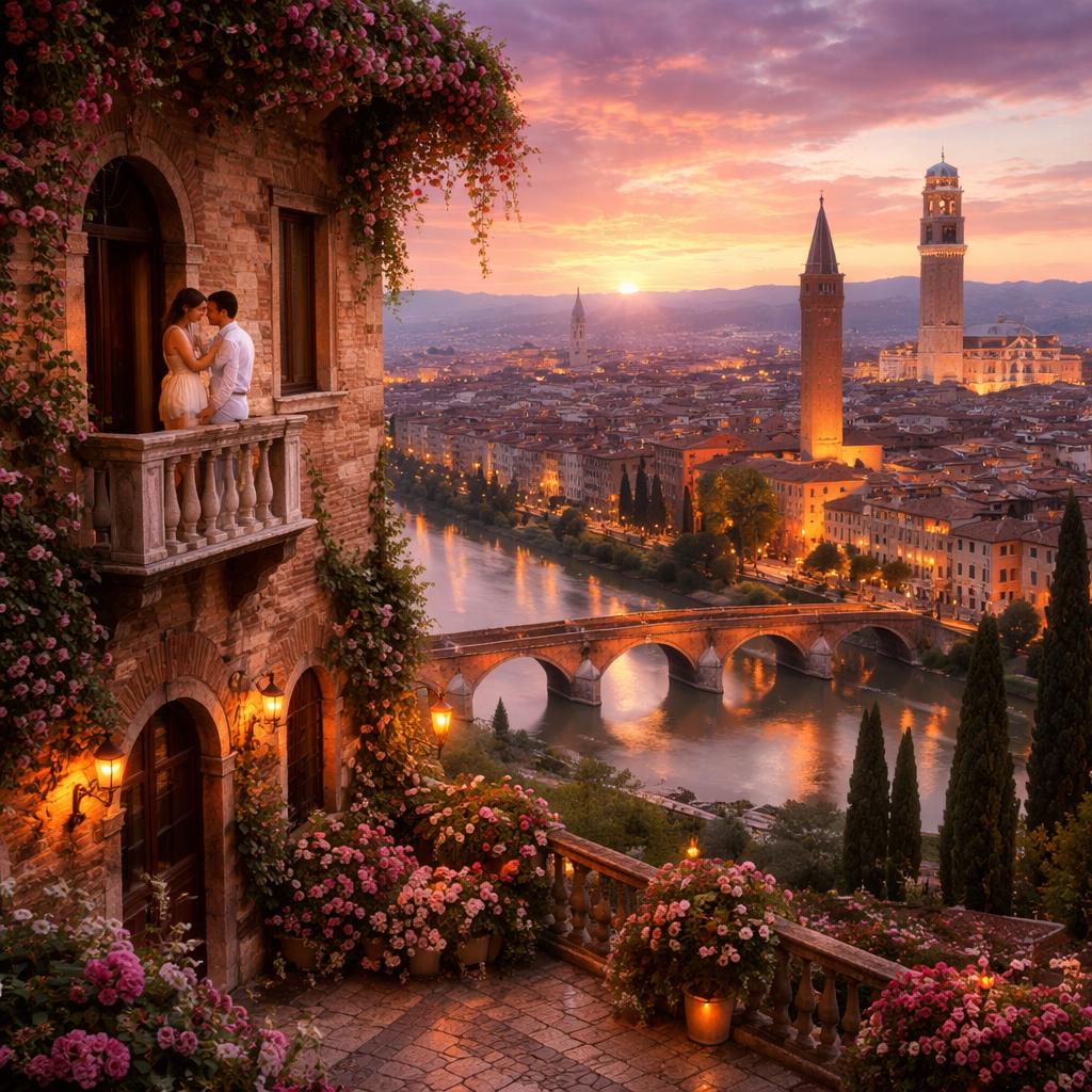На фото запечатлён знаменитый на весь мир балкон Джульетты в итальянском городе Вероне. По легенде на этом балконе Ромео признавался ей в любви.