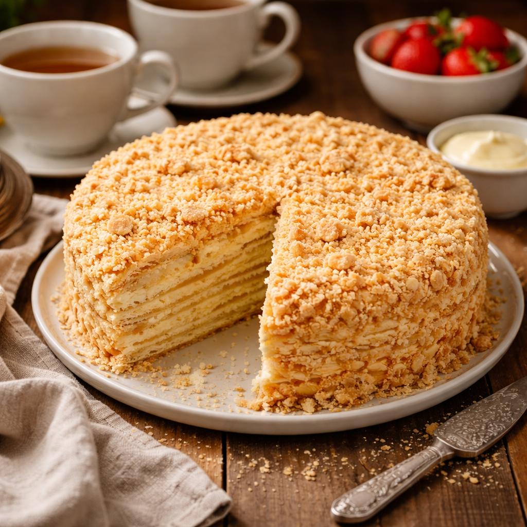 А определенная часть населения главным признаком наполеона считает всего лишь множество тонких коржей, а крем может быть любой.