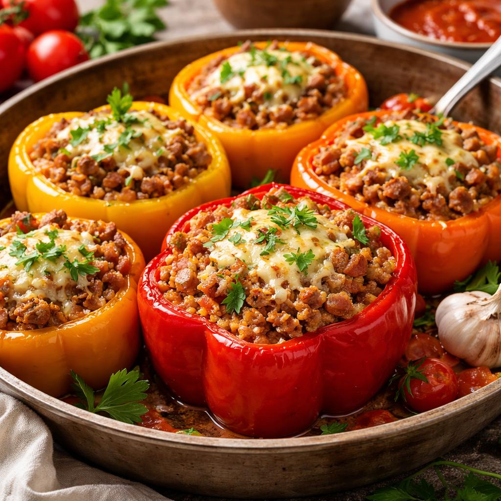 Перцы с куриным мясом и рисом