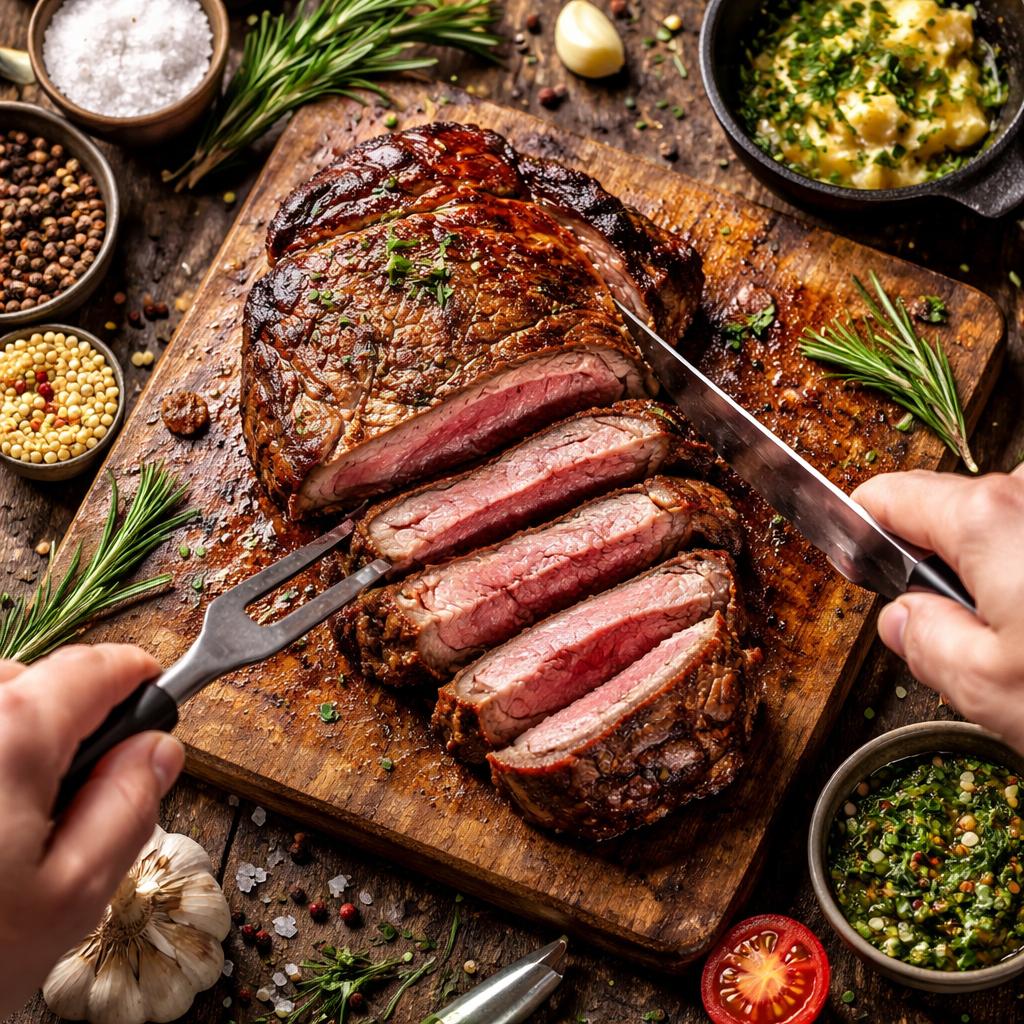После жарки, стейк необходимо дать отдохнуть на 5-7 минут. Это позволит сокам равномерно распределиться по мясу и сохранить его сочность.