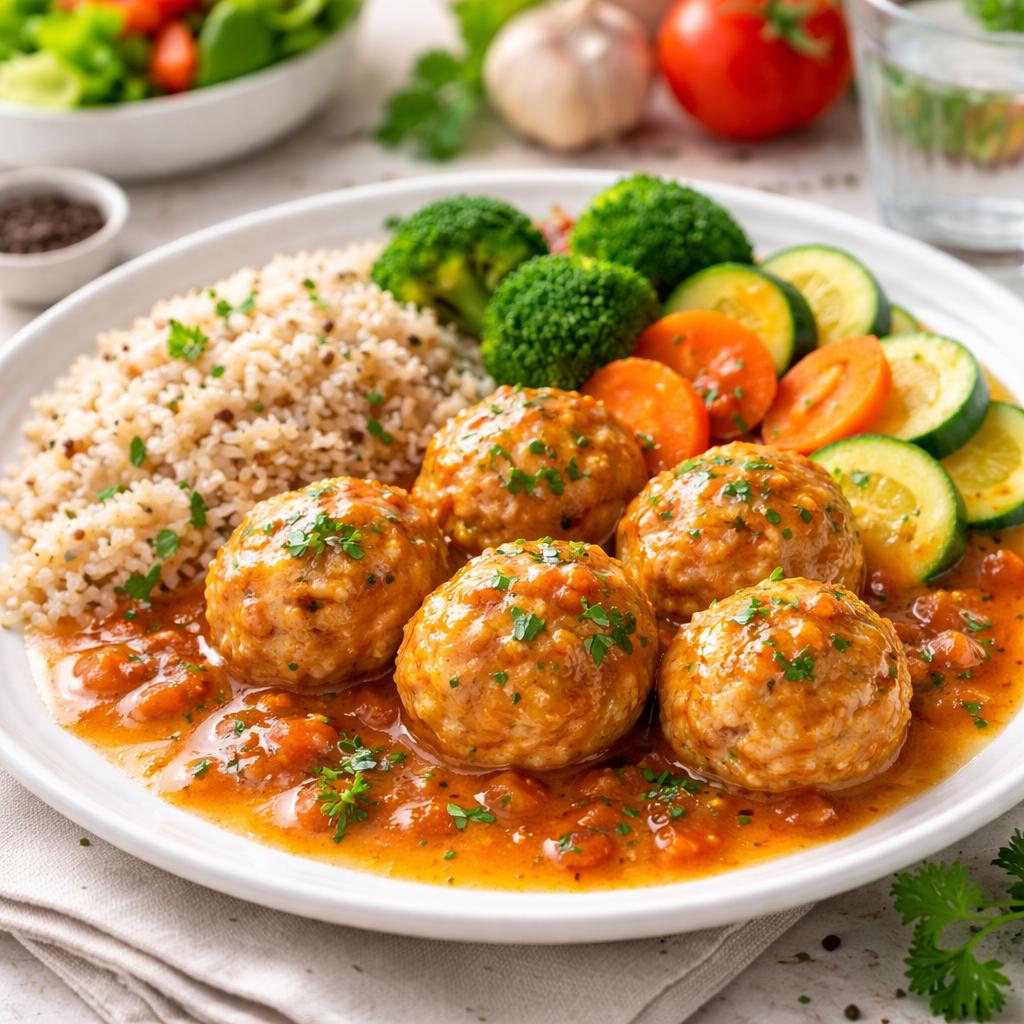 Залить тефтели соусом и отправить в духовку на 25 мин. Вытащить, посыпать тертым сыром и запекать ещё мин 10, чтобы сыр подрумянился.