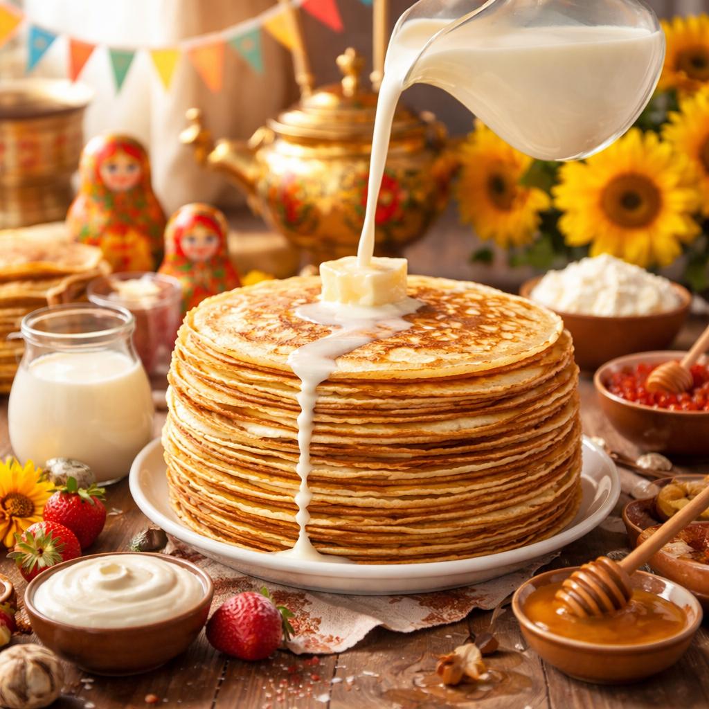 В рецепте блинов три вида молока: обычное, сухое и сгущенное.