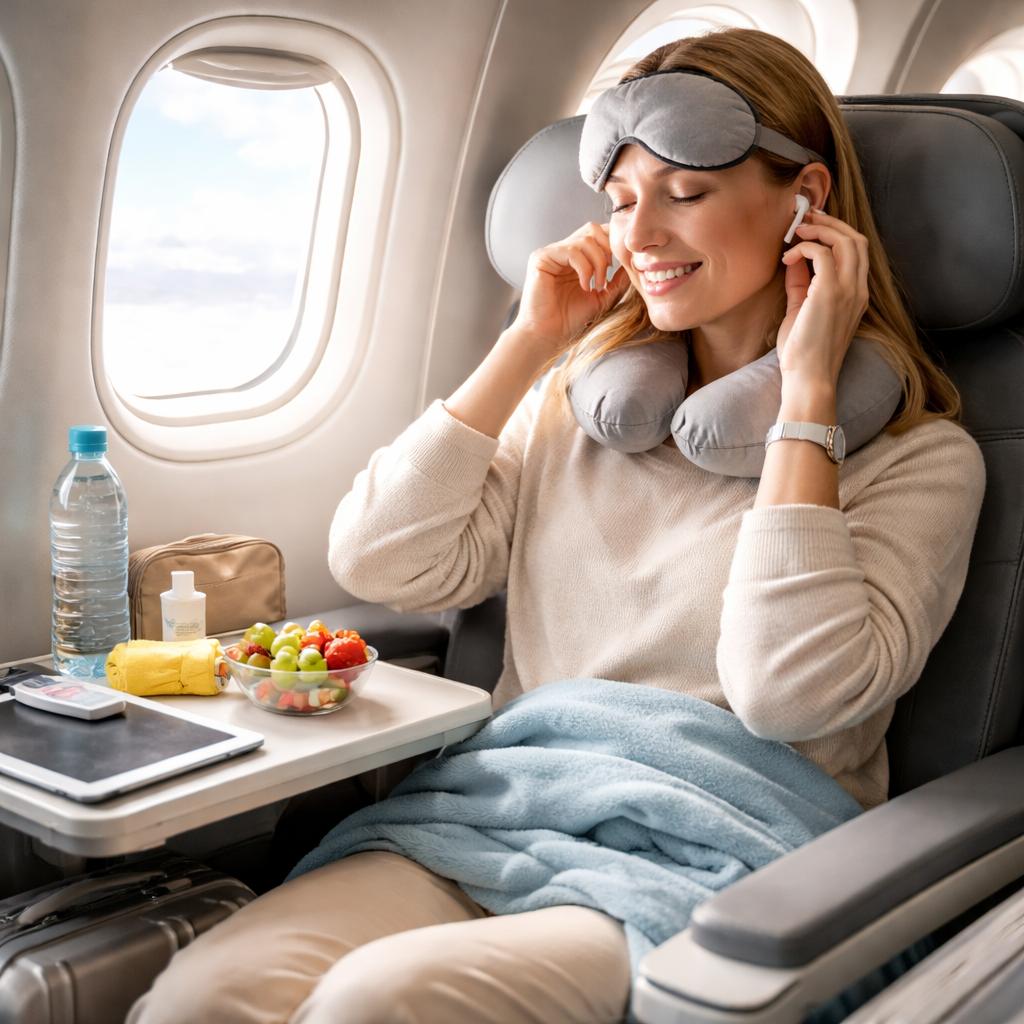 5. Используйте подушку для шеи и маску для глаз. Подушка для шеи поможет избежать болей в шее и спине, а маска для глаз поможет расслабиться и заснуть.