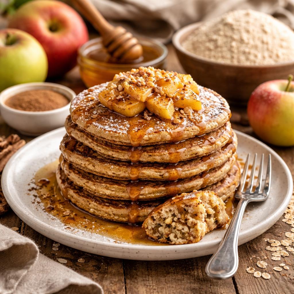 Вкусные и полезные яблочные оладьи с мукой грубого помола.