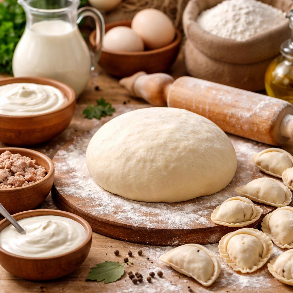 Простой пошаговый рецепт заварного теста на сметане для пельменей или вареников.
